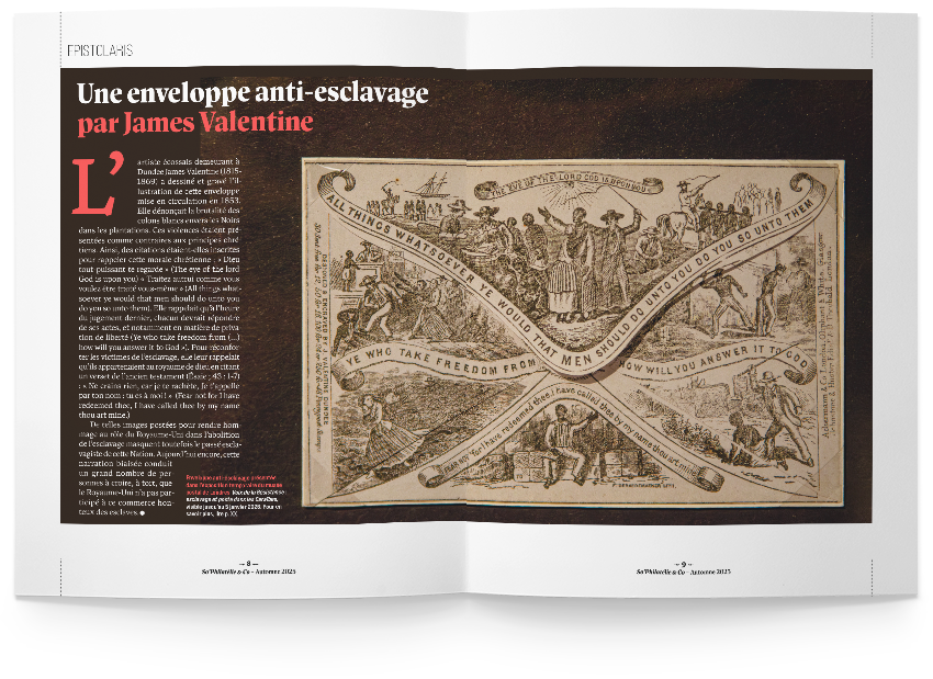 L’épistolaire au sens large (et tout ce qu'un philatéliste peut rencontrer au cours de ses recherches) a sa place dans cette rubrique. Dans le premier So'Philatélie & Co, découvrez une enveloppe anti-esclavage par James Valentine.