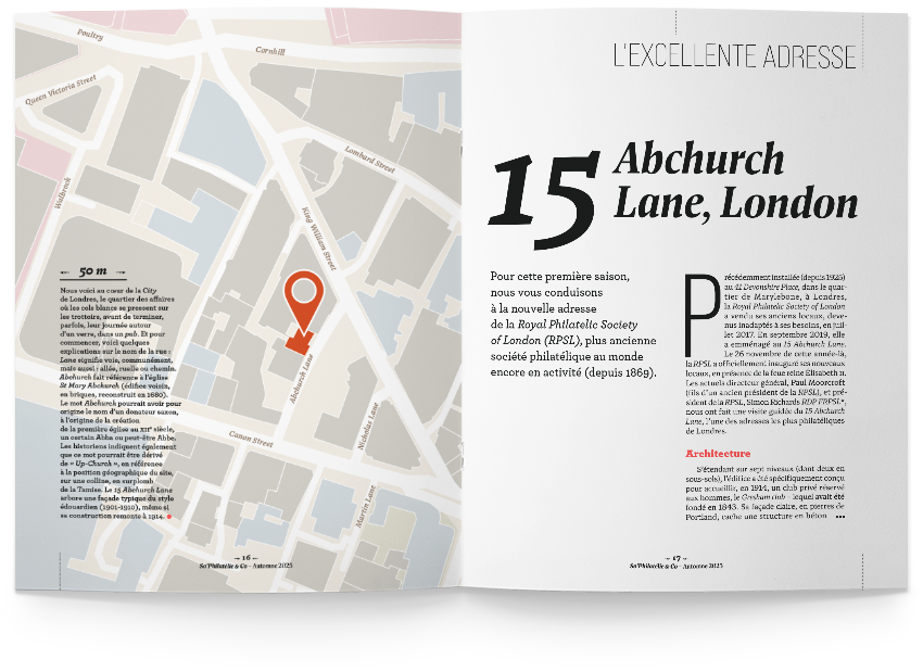 Dans le numéro inaugural, direction Londres, au siège de la Royal Philatelic Society, plus ancienne association philatélique au monde encore en activité (depuis 1869). Et vous trouverez aussi ici tous les bons conseils pour rédiger une adresse locale, cette saison : l’adresse à l’anglaise.