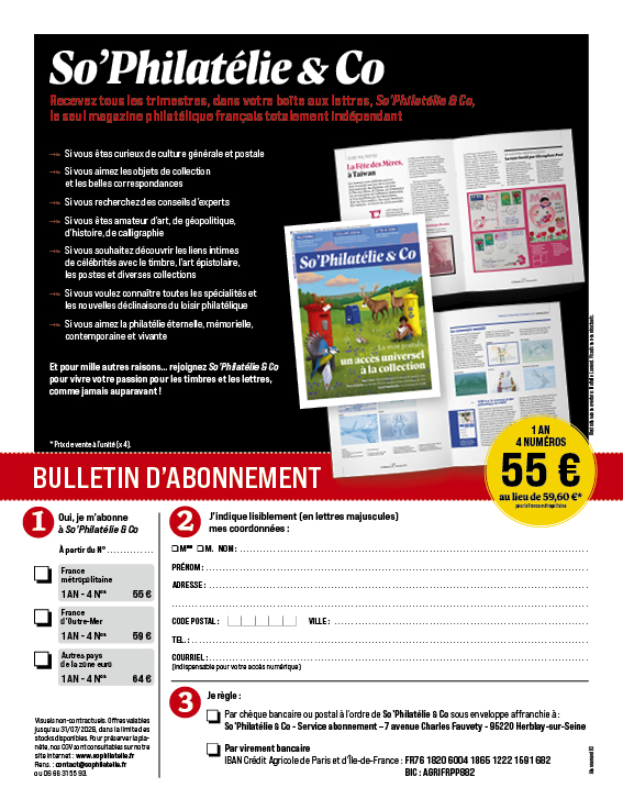 So’Philatélie & Co explore l’univers de la philatélie à 360°, en le considérant pleinement comme un domaine de la culture. Le magazine invite à observer le timbre à la loupe et à décrypter, pas à pas, les différentes spécialités philatéliques. Il établit des passerelles entre la philatélie, l'art épistolaire et l’ensemble des objets liés à la correspondance. Pour élargir les horizons, So’Philatélie & Co multiplie les regards croisés, s’aventure hors des sentiers battus et propose des perspectives inédites sur le timbre-poste et la lettre. Un vent de renouveau souffle sur la presse philatélique !