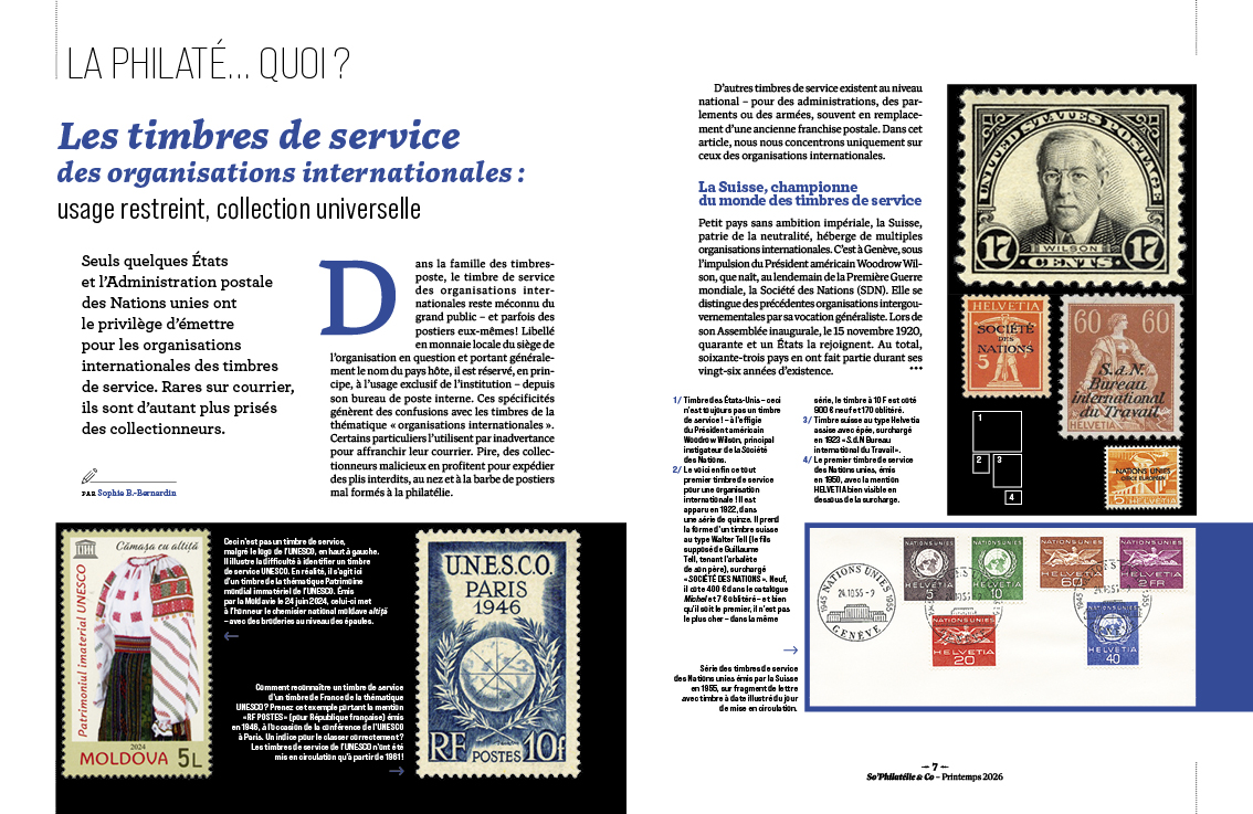 Chaque couverture de So’Philatélie & Co est illustrée par un artiste qui a déjà conçu des timbres et/ou des oblitérations pour La Poste française.